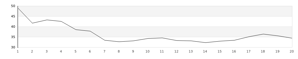 | 1 | 200 | T | 49,06 | - | - | 49,06 | | 2 | 200 | T | 41,70 | - | - | 41,70 | | 3 | 200 | T | 43,25 | - | - | 43,25 | | 4 | 200 | T | 42,52 | - | - | 42,52 | | 5 | 200 | T | 38,62 | - | - | 38,62 | | 6 | 200 | T | 37,83 | - | - | 37,83 | | 7 | 200 | T | 33,48 | - | - | 33,48 | | 8 | 200 | T | 32,77 | - | - | 32,77 | | 9 | 200 | T | 33,13 | 3 | - | 39,13 | | 10 | 200 | T | 34,24 | 1 | - | 36,24 | | 11 | 200 | T | 34,56 | 1 | - | 36,56 | | 12 | 200 | T | 33,34 | - | - | 33,34 | | 13 | 200 | T | 33,08 | - | - | 33,08 | | 14 | 200 | T | 32,34 | - | - | 32,34 | | 15 | 200 | T | 33,05 | - | - | 33,05 | | 16 | 200 | T | 33,39 | - | - | 33,39 | | 17 | 200 | T | 35,19 | - | - | 35,19 | | 18 | 200 | T | 36,38 | - | - | 36,38 | | 19 | 200 | T | 35,62 | - | - | 35,62 | | 20 | 200 | T | 34,43 | - | - | 34,43 |