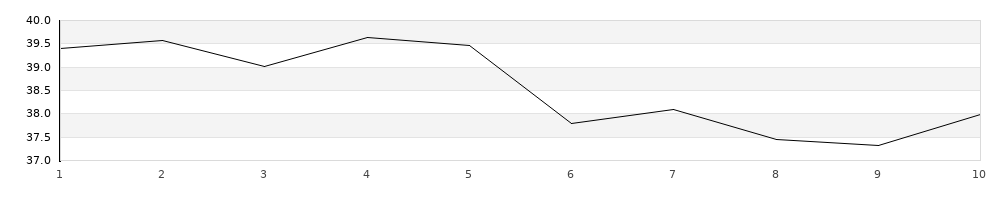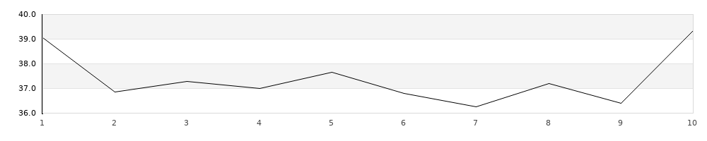 | 1 | 390B | R | 39,06 | - | - | 39,06 | | 2 | 390B | R | 36,86 | 1 | - | 38,86 | | 3 | 390B | R | 37,29 | 1 | - | 39,29 | | 4 | 390B | R | 36,99 | - | - | 36,99 | | 5 | 390B | R | 37,65 | - | - | 37,65 | | 6 | 390B | N | 36,79 | 1 | - | 38,79 | | 7 | 390B | N | 36,27 | 2 | - | 40,27 | | 8 | 390B | N | 37,19 | 2 | 1 | 51,19 | | 9 | 390B | N | 36,40 | - | 1 | 46,40 | | 10 | 390B | N | 39,35 | 2 | - | 43,35 | | 11 | 390U | N | 39,41 | 2 | - | 43,41 | | 12 | 390U | N | 39,58 | - | 1 | 49,58 | | 13 | 390U | N | 39,02 | - | 1 | 49,02 | | 14 | 390U | N | 39,64 | 1 | - | 41,64 | | 15 | 390U | N | 39,46 | - | 1 | 49,46 | | 16 | 390U | R | 37,79 | 1 | - | 39,79 | | 17 | 390U | R | 38,10 | - | - | 38,10 | | 18 | 390U | R | 37,44 | - | 1 | 47,44 | | 19 | 390U | R | 37,33 | 1 | 1 | 49,33 | | 20 | 390U | R | 37,99 | - | - | 37,99 |