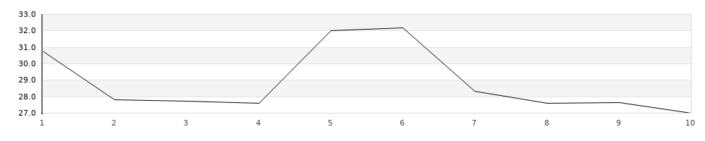 | 1 | 270BL | T | 30,78 | - | - | 30,78 | | 2 | 270BL | T | 27,81 | - | - | 27,81 | | 3 | 270BL | T | 27,73 | - | - | 27,73 | | 4 | 270BL | T | 27,62 | - | - | 27,62 | | 5 | 270BL | T | 32,00 | - | - | 32,00 | | 6 | 270BL | T | 32,17 | - | - | 32,17 | | 7 | 270BL | T | 28,31 | - | - | 28,31 | | 8 | 270BL | T | 27,59 | - | - | 27,59 | | 9 | 270BL | T | 27,64 | - | - | 27,64 | | 10 | 270BL | T | 27,01 | - | - | 27,01 | | 11 | 390U | T | 28,94 | - | - | 28,94 | | 12 | 390U | T | 27,26 | - | - | 27,26 | | 13 | 390U | T | 27,10 | - | - | 27,10 | | 14 | 390U | T | 26,58 | - | - | 26,58 | | 15 | 390U | T | 27,24 | - | - | 27,24 |
