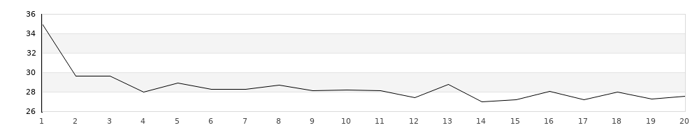 | 1 | 140L | T | 34,98 | - | 1 | 44,98 | | 2 | 140L | T | 29,65 | - | - | 29,65 | | 3 | 140L | T | 29,61 | - | - | 29,61 | | 4 | 140L | T | 28,02 | - | - | 28,02 | | 5 | 140L | T | 28,95 | - | - | 28,95 | | 6 | 140L | T | 28,28 | - | - | 28,28 | | 7 | 140L | T | 28,32 | - | - | 28,32 | | 8 | 140L | T | 28,68 | - | - | 28,68 | | 9 | 140L | T | 28,17 | - | - | 28,17 | | 10 | 140L | T | 28,24 | - | - | 28,24 | | 11 | 140L | T | 28,17 | 1 | - | 30,17 | | 12 | 140L | T | 27,40 | - | - | 27,40 | | 13 | 140L | T | 28,81 | - | - | 28,81 | | 14 | 140L | T | 27,02 | 1 | - | 29,02 | | 15 | 140L | T | 27,20 | - | - | 27,20 | | 16 | 140L | T | 28,10 | - | - | 28,10 | | 17 | 140L | T | 27,21 | - | - | 27,21 | | 18 | 140L | T | 27,98 | - | - | 27,98 | | 19 | 140L | T | 27,28 | - | - | 27,28 | | 20 | 140L | T | 27,59 | - | - | 27,59 |