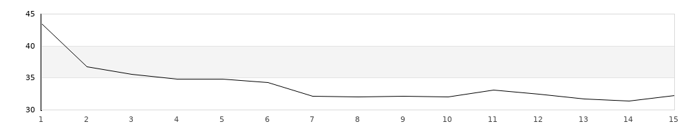 | 1 | 390U | T | 43,45 | - | - | 43,45 | | 2 | 390U | T | 36,75 | - | - | 36,75 | | 3 | 390U | T | 35,54 | - | - | 35,54 | | 4 | 390U | T | 34,84 | - | - | 34,84 | | 5 | 390U | T | 34,87 | - | - | 34,87 | | 6 | 390U | T | 34,24 | - | - | 34,24 | | 7 | 390U | T | 32,18 | - | - | 32,18 | | 8 | 390U | T | 32,06 | - | - | 32,06 | | 9 | 390U | T | 32,12 | - | - | 32,12 | | 10 | 390U | T | 32,02 | - | - | 32,02 | | 11 | 390U | T | 33,09 | - | - | 33,09 | | 12 | 390U | T | 32,51 | - | - | 32,51 | | 13 | 390U | T | 31,68 | - | - | 31,68 | | 14 | 390U | T | 31,43 | - | - | 31,43 | | 15 | 390U | T | 32,26 | - | - | 32,26 |